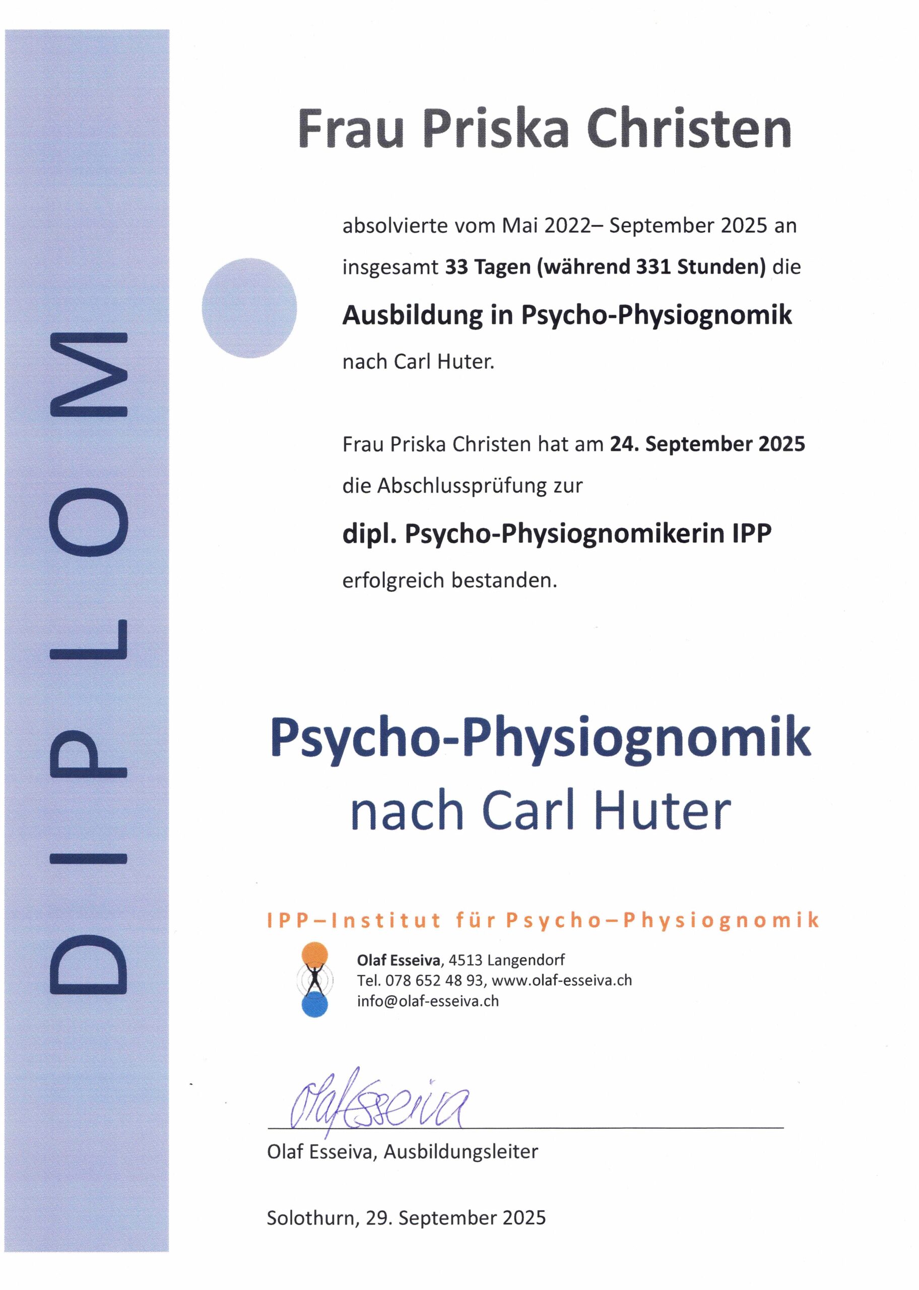 Priska Christen, Dipl. Psycho-Physiognomikerin